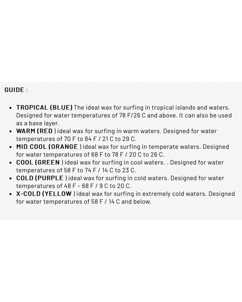 Formulė: 5X – tvirtas vaškas, skirtas šiltam ir tropiniam vandeniui