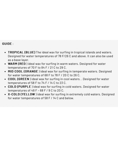 SexWax Quick Humps Warm (raudonas) vaškas sukurtas šiltam ir tropiniam vandeniui, užtikrindamas puikų sukibimą su lenta esant 21–29 °C temperatūrai. Tinka tiek pradedantiesiems, tiek pažengusiems banglentininkams, norintiems patikimos dangos ant lentos.